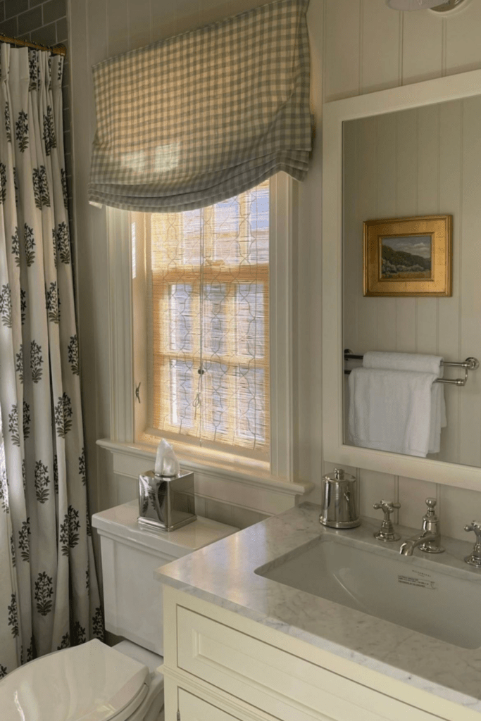 Is there a window position right above your toilet? We can only imagine the incredible light coming in to get ready in the morning; however, it can be a tricky space to decorate. One of the easiest solutions to add character and a custom feel to your bathroom is installing a cafe curtain on the window.
