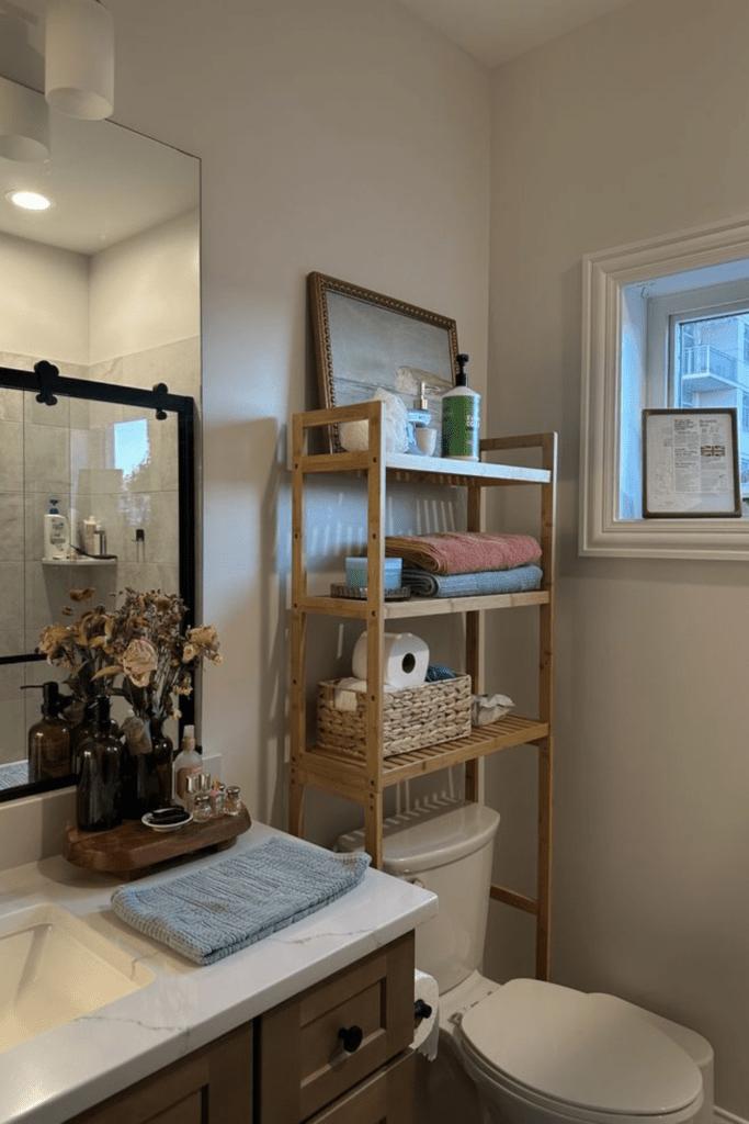 11. “Clean Girl Aesthetic” Above Toilet Shelf