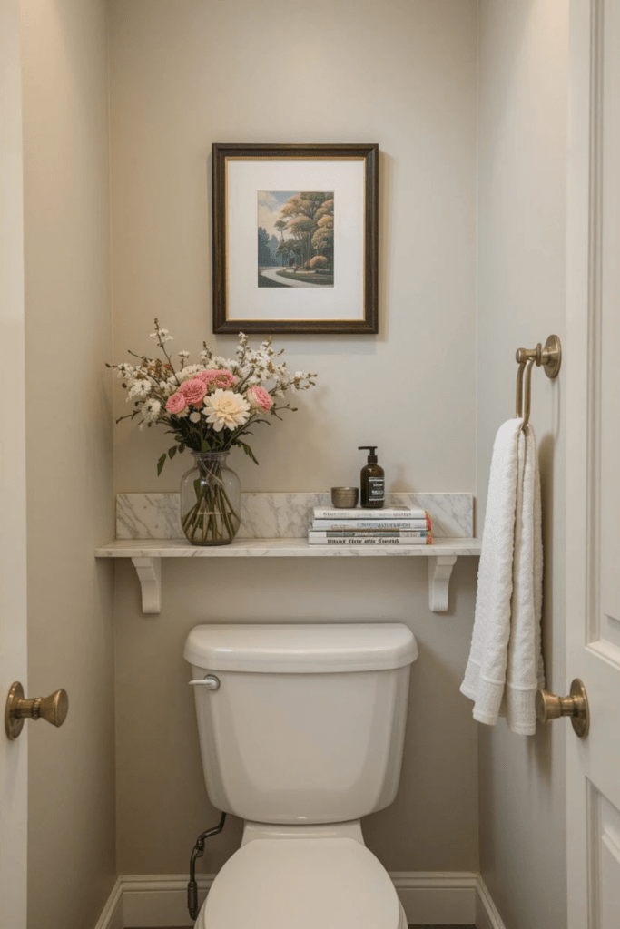 14. Simple Marble Shelf Over the Toilet