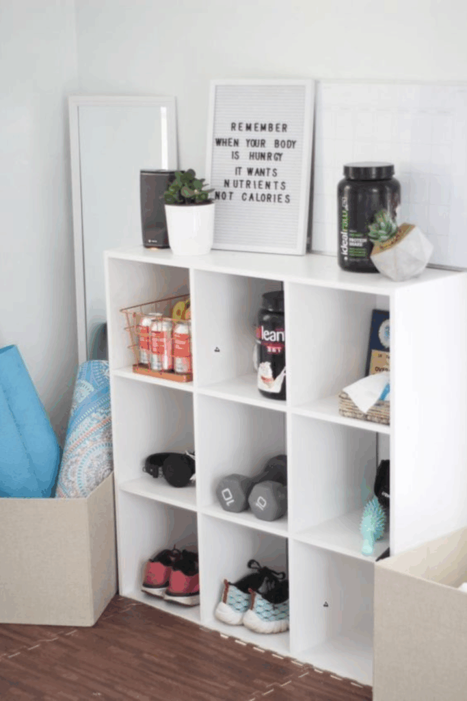 If you have a home gym, or a larger space for your workout gear, adding cube shelving is another great way to maximize your space.