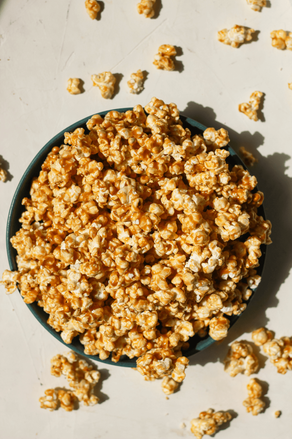 Let the popcorn rest for about 15 minutes before serving. This will give the caramel time to set and harden. When you’re ready to serve, break up any large chunks of popcorn, pour into a bowl to eat or store in an airtight container