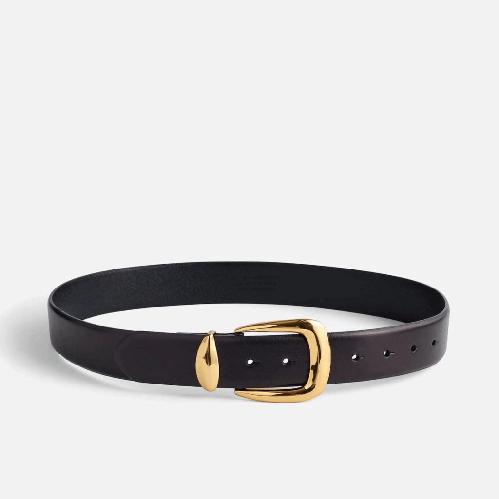 1. Black Tank + Dark Wash Barrel Jeans + Belt + Loafers