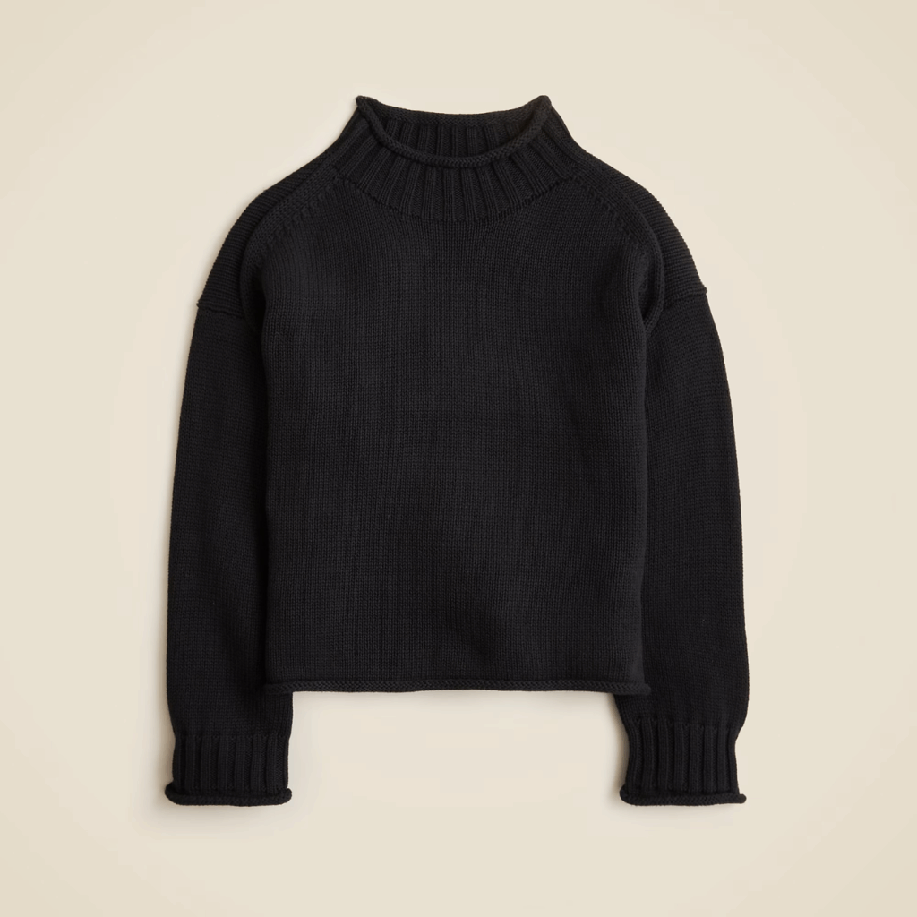 For warmer fall days, you can still pull off a cute loafer look. What we love about this outfit idea is that the barrel pants add dimension to an otherwise basic outfit. To recreate the look, pair your favorite barrel dark wash jeans with a simple black tank. Add a black belt, loafers, and your favorite mini handbag to complete the look.