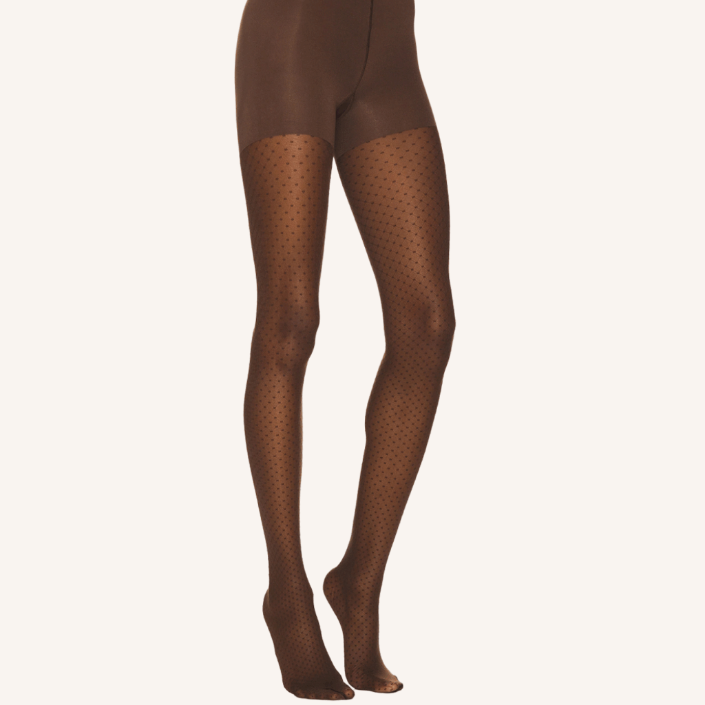 7. Oversized Sweater + Polka Dot Skirt + Coat + Tights + Loafers