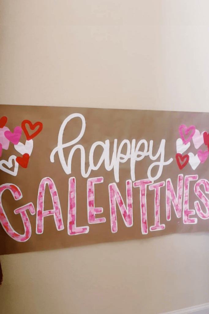 I’m always down for a cute DIY party decoration, and making a paper banner is so fun. I personally love this design and the way they painted the letters. Add some pink, red, and white hearts to fill the space. Then tape it on your wall for people to see when they enter.