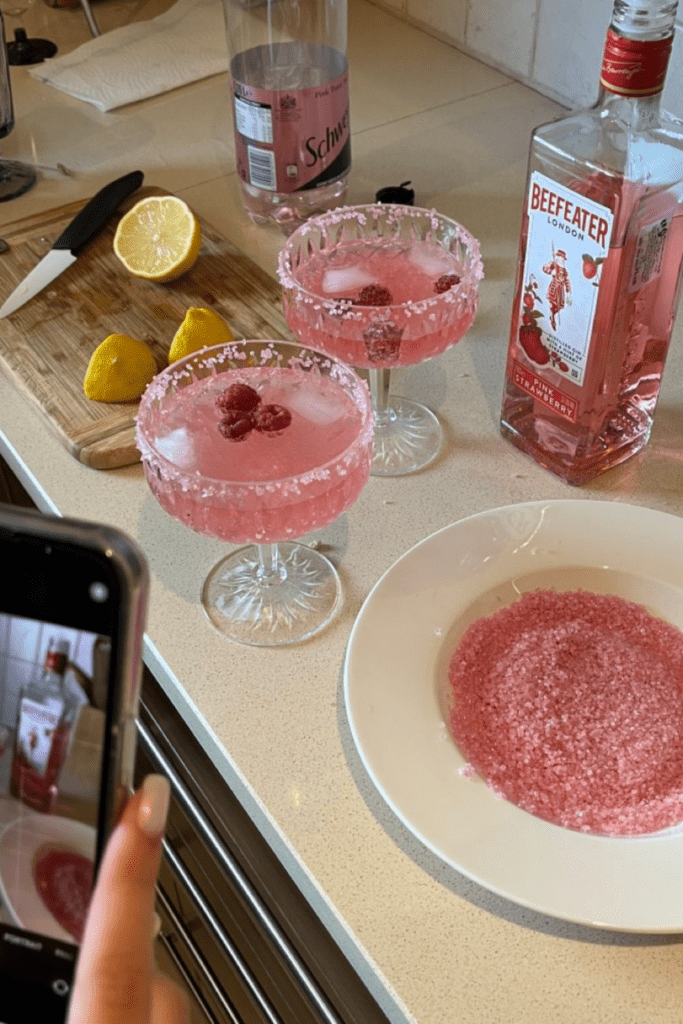 Whether it’s a cocktail or a cute mocktail, a fun pink drink has to be on the Galentine’s menu. Serve it in a coupe glass, dust the edge with pink sugar, and add a candy topper. If you’re looking for an easy pink drink recipe, try this one!