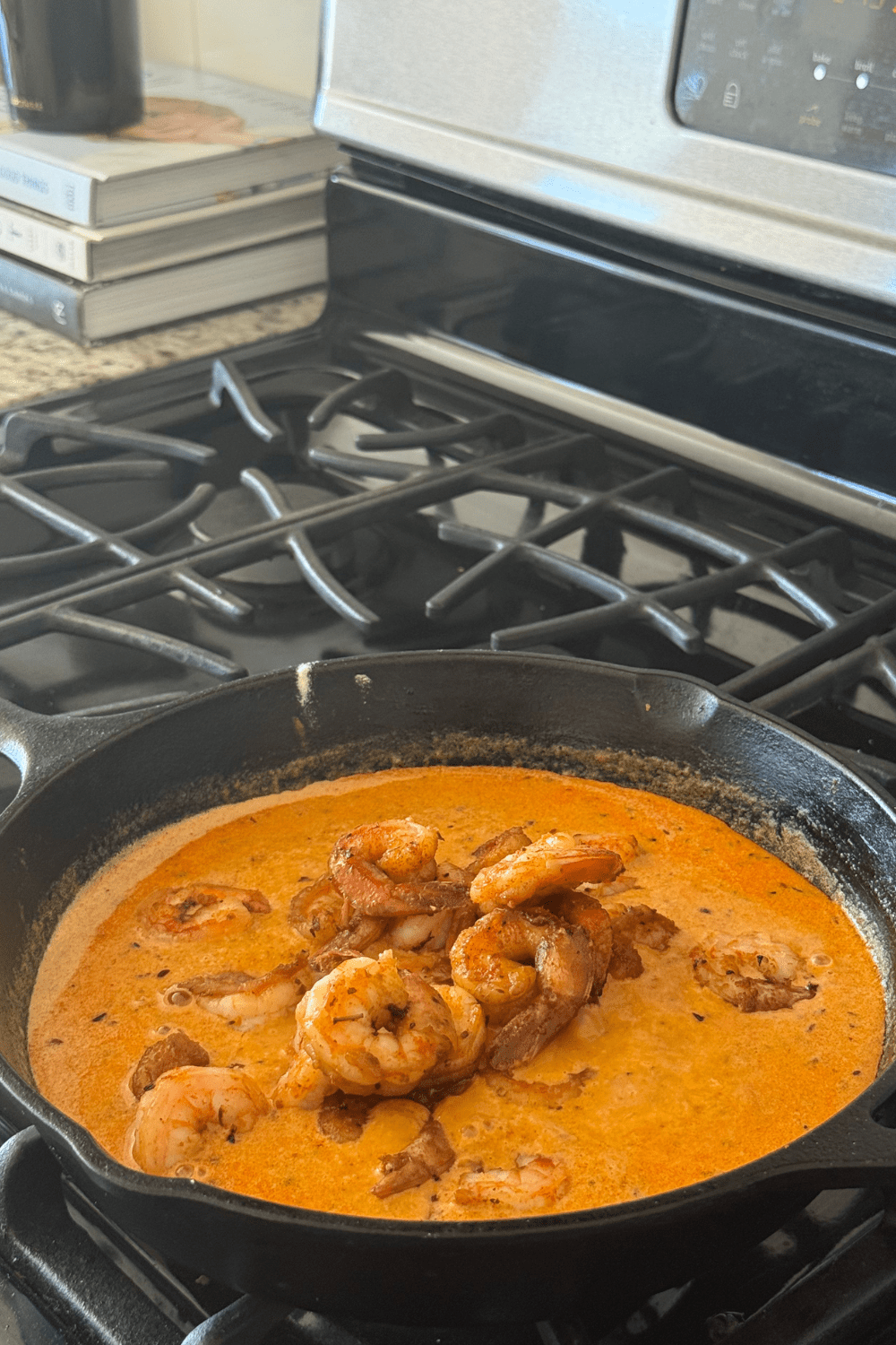 - It’s a one-pan dish. Which means less cleanup time! The shrimp and sauce are all cooked in the same skillet over the stovetop. Less stress to make and clean afterwards – win, win!