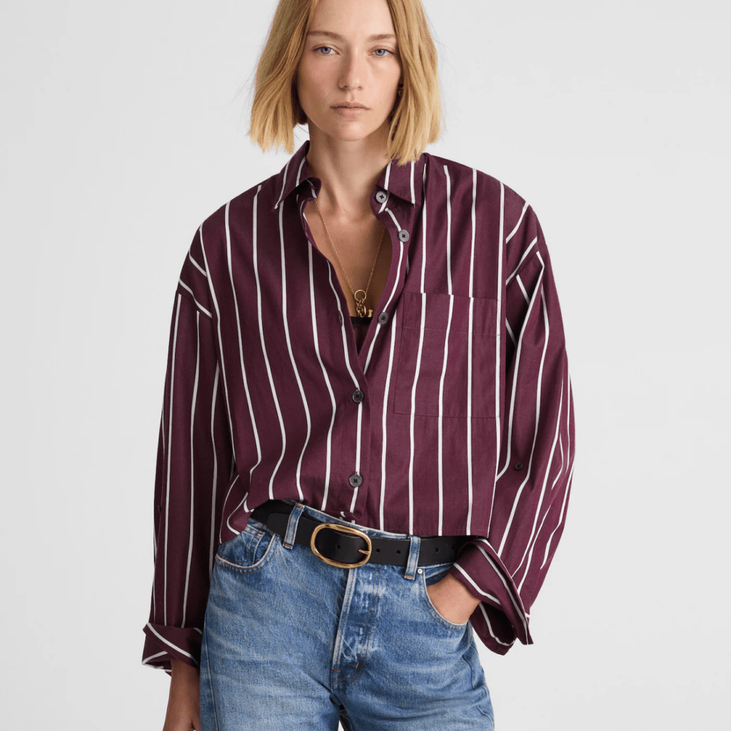 Holy-2010s! V-necks are back, and we’re not mad about it like we might have been in previous years. As it haunted our middle school and high school years, the return of the V-neck shirt has a more modern feel. Maybe it’s the idea of pairing the top with some pleated trousers and flats that makes it more accepting. However, if you choose to style a V-neck top this year, keep it fresh and clean with a bomber jacket and jeans.